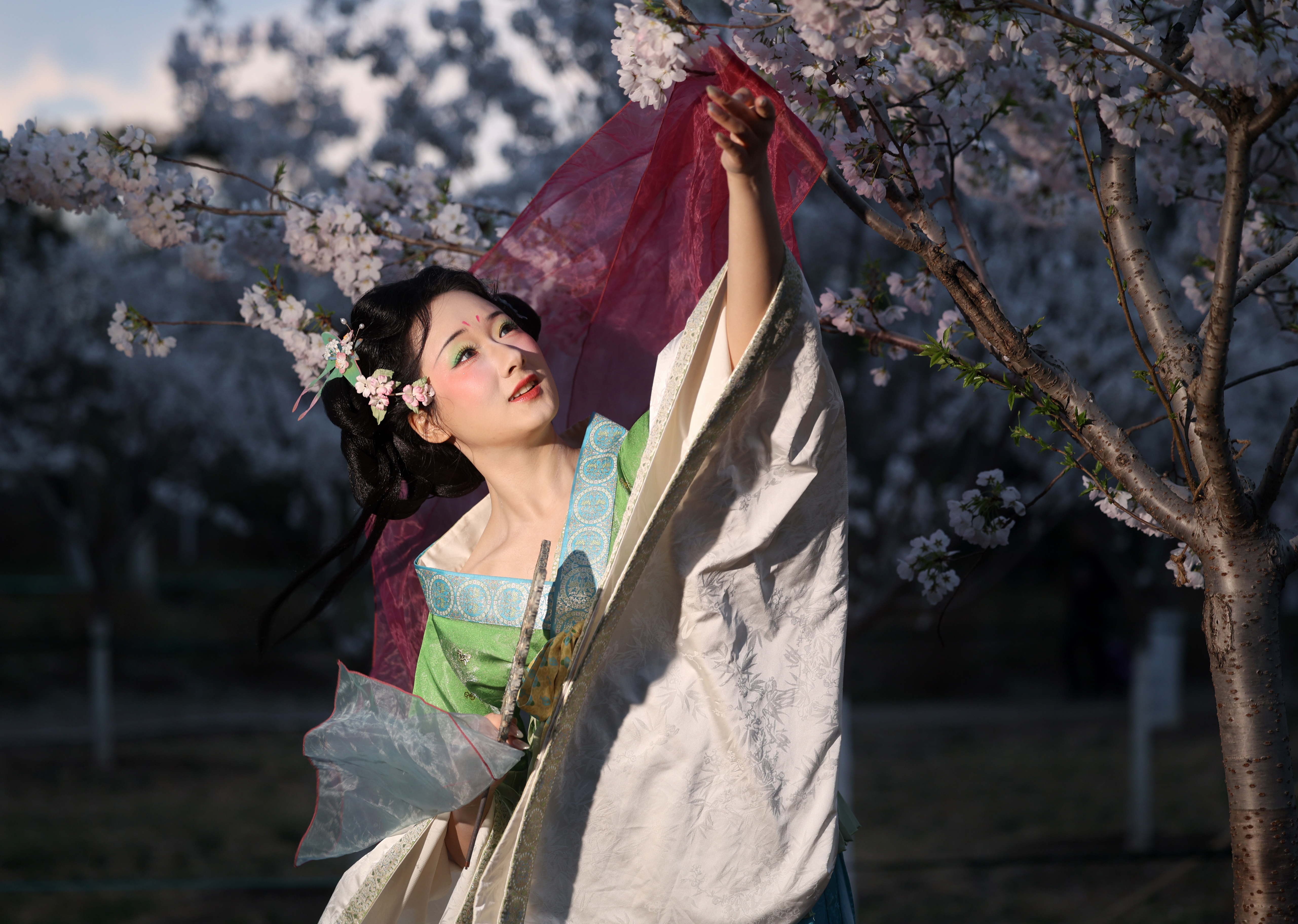 3月29日,游客盛装打扮在玉渊潭樱花树前拍摄写真。李国庆摄
