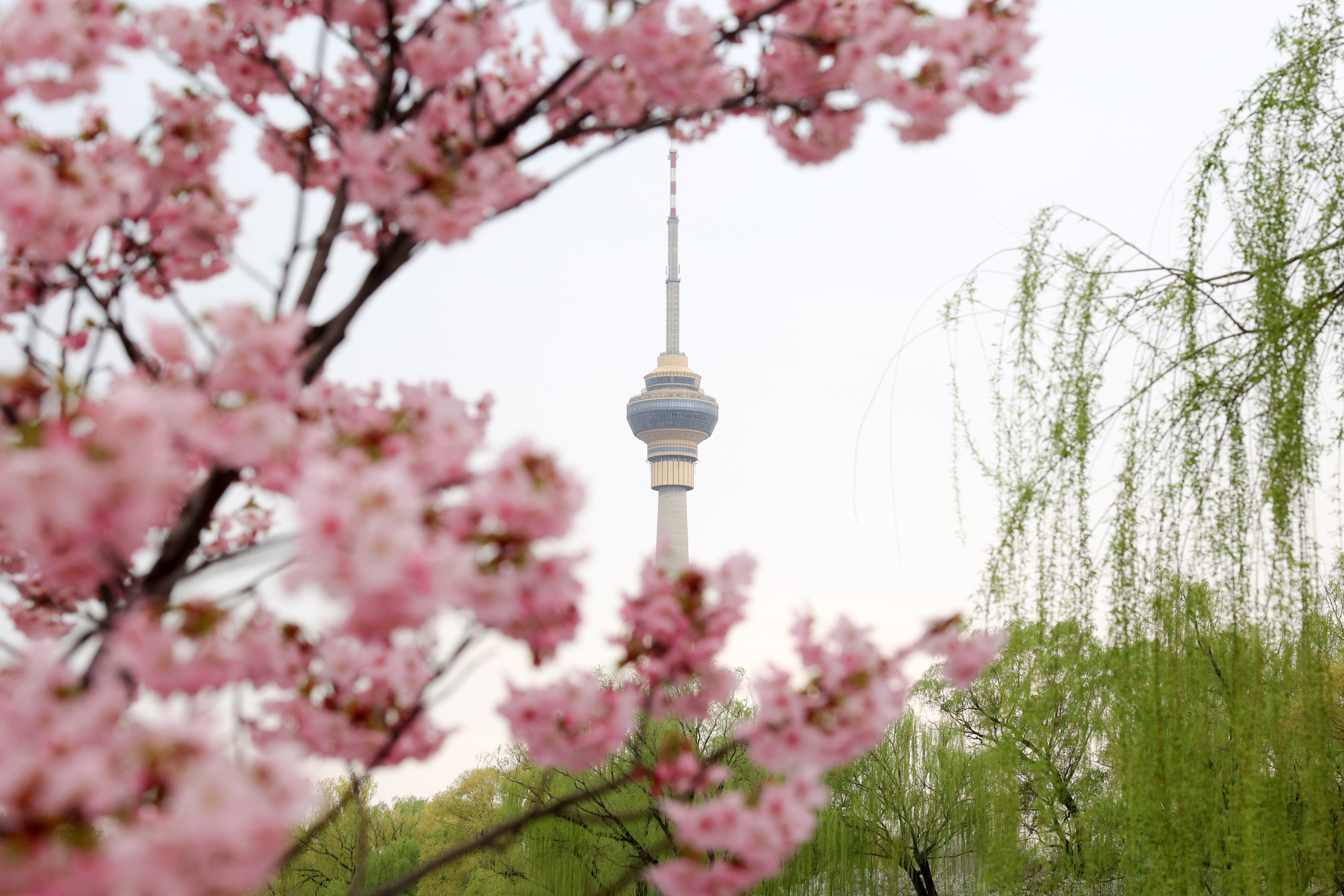 3月29日,玉渊潭公园内眺望中央电视塔。李国庆摄