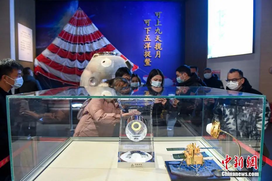 ▲市民参观嫦娥五号备份存储月球样品。(中新网资料图片)