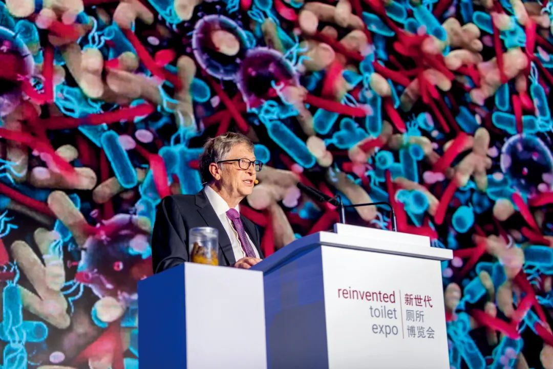 ▲2018年11月,比尔·盖茨在北京召开的“新世代厕所博览会”现场。(图片来自中国新闻周刊)