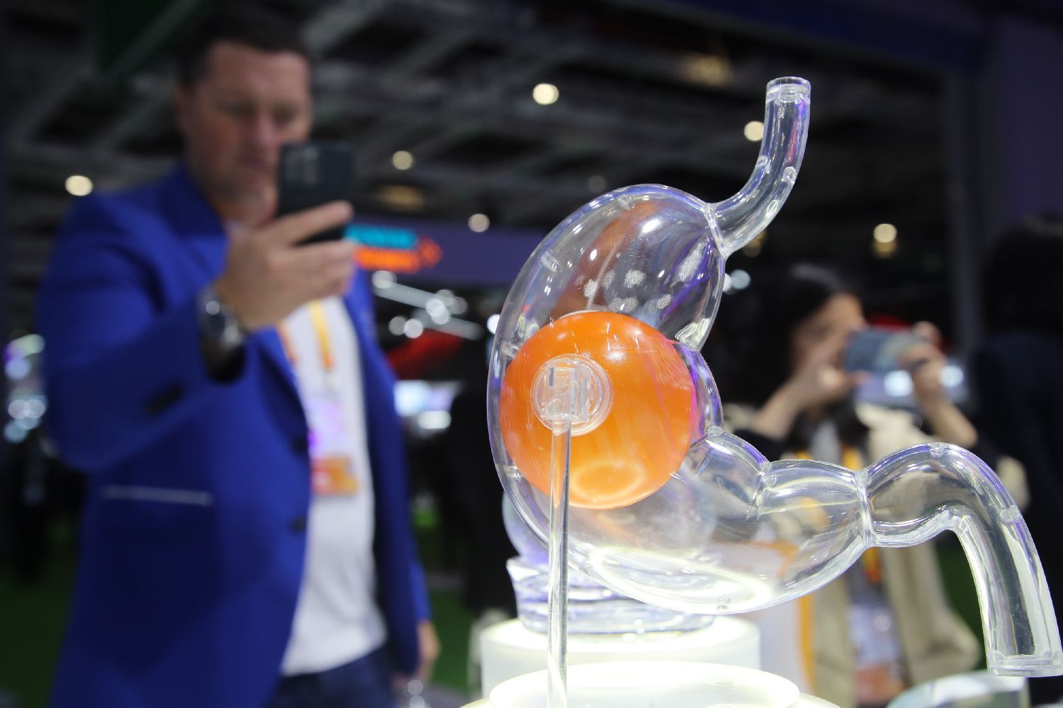 ▲图为全球首款胃内球囊亮相进博会,为肥胖患者创造福音。(图片来自中新社)