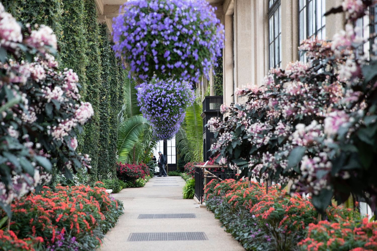 ▲当地时间2月22日,美国宾夕法尼亚州长木花园,游客观赏温室中的鲜花。长木花园又名杜邦花园,园内共栽培种植上万种植物,是美国著名的植物园林。(图片来自中新社)