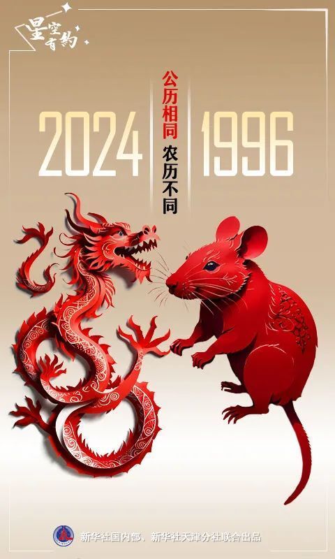 1996年和2024年的公历日历分布完全相同,农历日期是不是也完全相同?“农历日期并不相同。1996年的元旦对应的农历日期是十一月十一,而2024年的元旦对应的农历日期是十一月二十。由于这两个年份的第一天所对应的农历日期不同,剩下的365天所对应的农历日期自然也就不会相同。”杨婧说。(完)