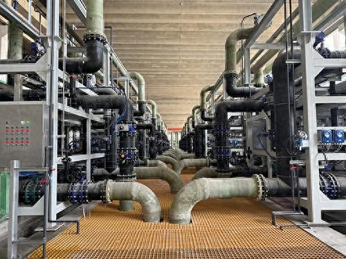 在附近的近海,海水通过管道输送至车间,历经若干道精密的淡化装置将其由“浓”变“淡”,作为主水源满足园区内企业、重大项目的工业用水需求。