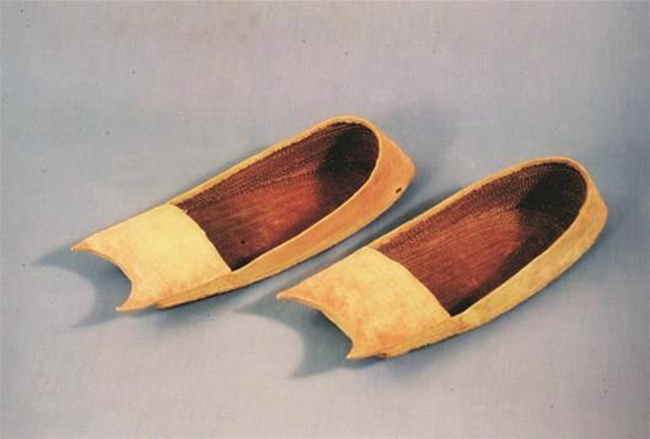 荆州博物馆还收藏了一双透气的汉代麻鞋。它于1975年在湖北江陵凤凰山168号汉墓出土,鞋面用白色平稳麻布制成,鞋里、垫、底均用麻线编织成人字纹,犹如现在人们夏日里常穿的“一脚蹬”。
