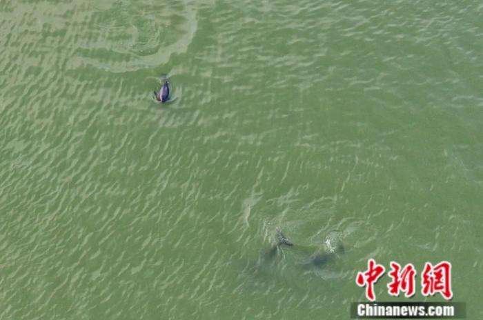 ▲2021年9月3日,江西南昌,几只野生长江江豚在赣江水域畅游。中新社记者刘占昆摄