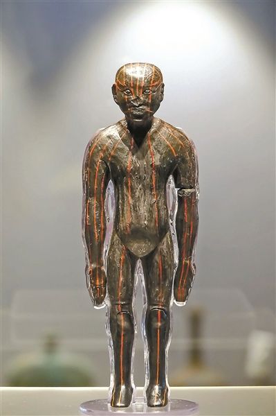 在成都博物馆的展厅中,展示着一件诠释了经脉针灸理论的珍贵文物——经脉漆人。经脉漆人仅高14厘米,与其本身的重要性形成了“反差萌”。