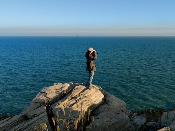 ▲邵蕊在青岛马儿岛观鸟。(图片来自《中国青年报》)