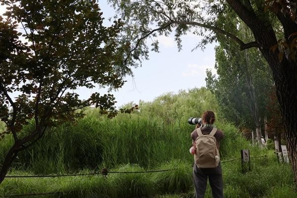 ▲奥林匹克森林公园,观鸟爱好者在拍一只东方大苇莺。(图片来自《中国青年报》)