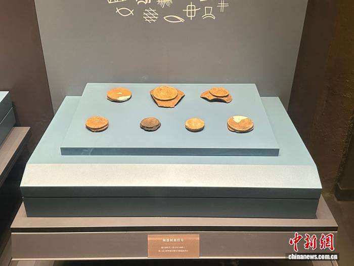 ▲8月14日,安徽蚌埠,一批新石器时代陶器刻划符号在双墩国家考古遗址公园内展出。(图片来自中新社)