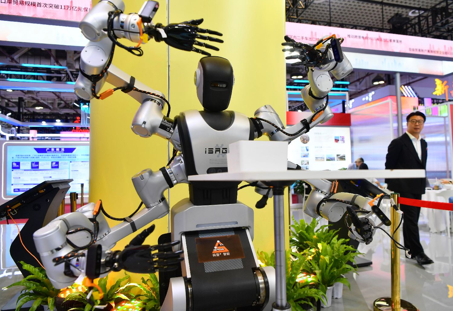 ▲9月9日,四臂具身智能机器人在投洽会上展示。第二十五届中国国际投资贸易洽谈会正在福建厦门举行。(图片来自中新社)