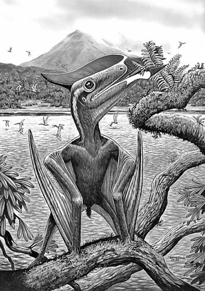 ▲中国翼龙食植生态复原图。(毛里利奥·奥利维拉 绘)