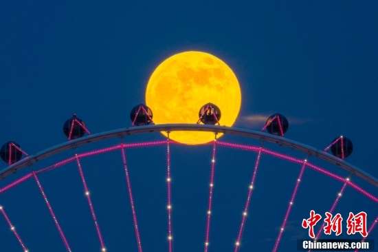 ▲2024年10月17日,广东佛山年度最大满月从摩天轮上升起。图自中新网