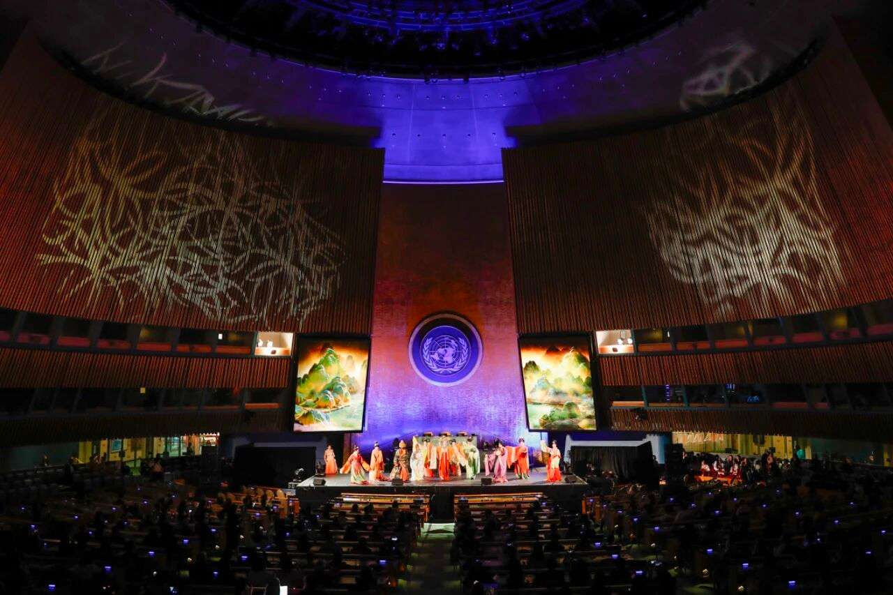 ▲当地时间2025年6月9日,中国在纽约联合国总部举办“文明对话国际日”主题活动,包括主题对话会、文明交流互鉴长卷展览以及“跨越山海的文明对话”文艺演出等活动。(图片来自中新社 廖攀 摄)