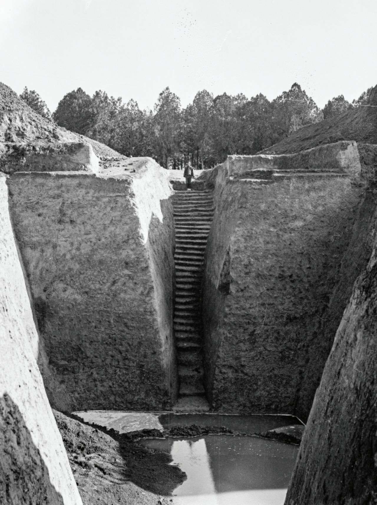 ▲安阳晚商王陵区M1400的墓穴,其陡峭的黄土墓壁深度超过三层楼,年代约为公元前1200年。出版方供图