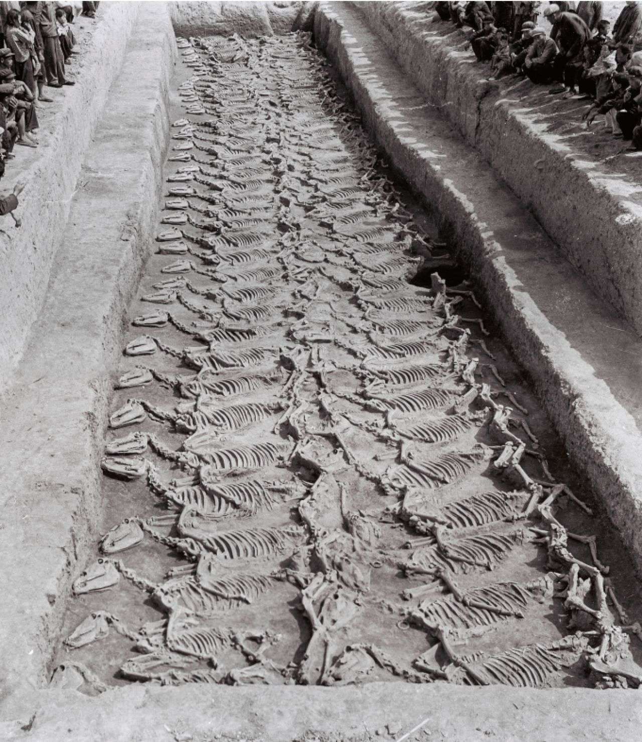 ▲山东临淄齐故城五号墓的殉马坑(图为南面段),大约埋葬着600匹马,年代为公元前6世纪至前5世纪。出版方供图