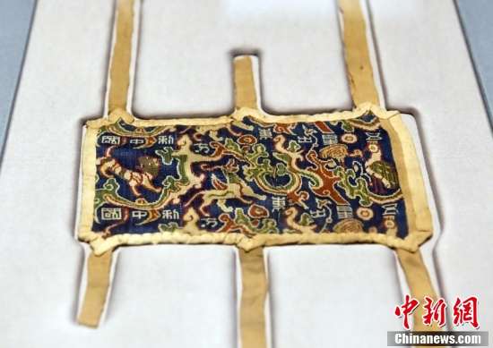 ▲“五星出东方利中国”汉代织锦护臂(又称“五星锦”)。图自中新网