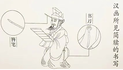 ▲汉画所见简牍的书写,甘肃省简牍博物馆展。(作者摄)