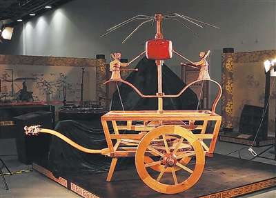 ▲中国科学技术馆展出的记里鼓车复原模型。中国科学技术馆供图