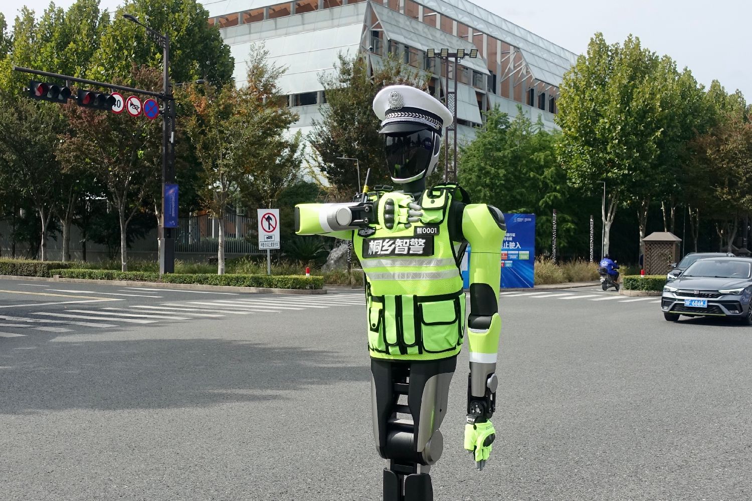 ▲11月3日,机器人“交警”辅助指挥交通。(图片来自中新社)