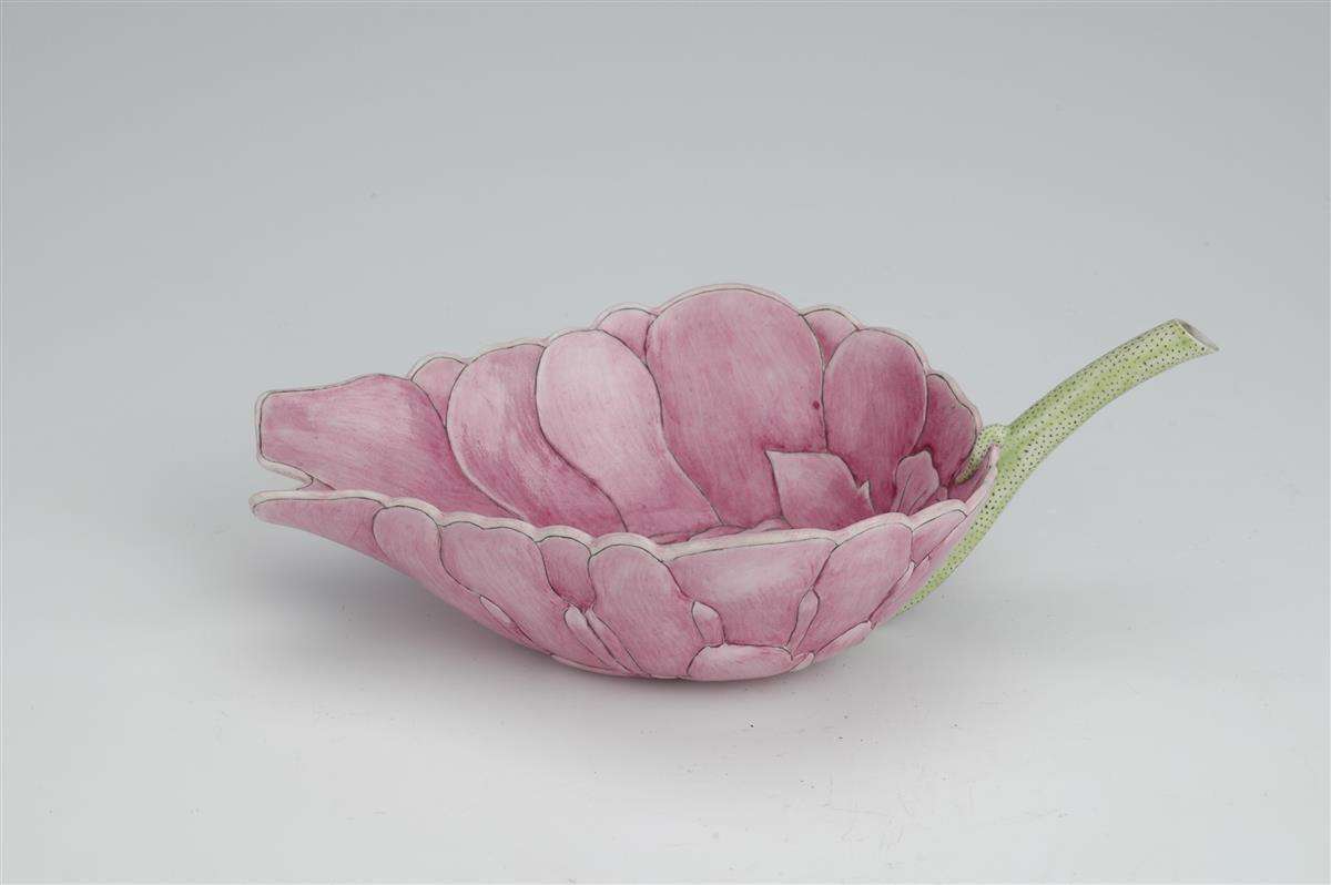 从工艺角度来看,粉彩莲花吸杯完美展现了晚清粉彩瓷的制作水平。其整体造型被设计成一朵盛开的莲花,花瓣自然舒展,形态逼真。器身通常施以柔和的粉红色彩,模仿莲花的天然色泽,花瓣边缘部分颜色稍深,向内逐渐晕散变浅,这种细腻的色彩过渡正是粉彩技术的精髓所在。粉彩不同于颜色浓烈的五彩和淡雅的珐琅彩,它通过在彩料中引入“玻璃白”,并在烧制前进行“洗染”,从而形成了画面层次丰富、色调粉润柔和的独特效果。