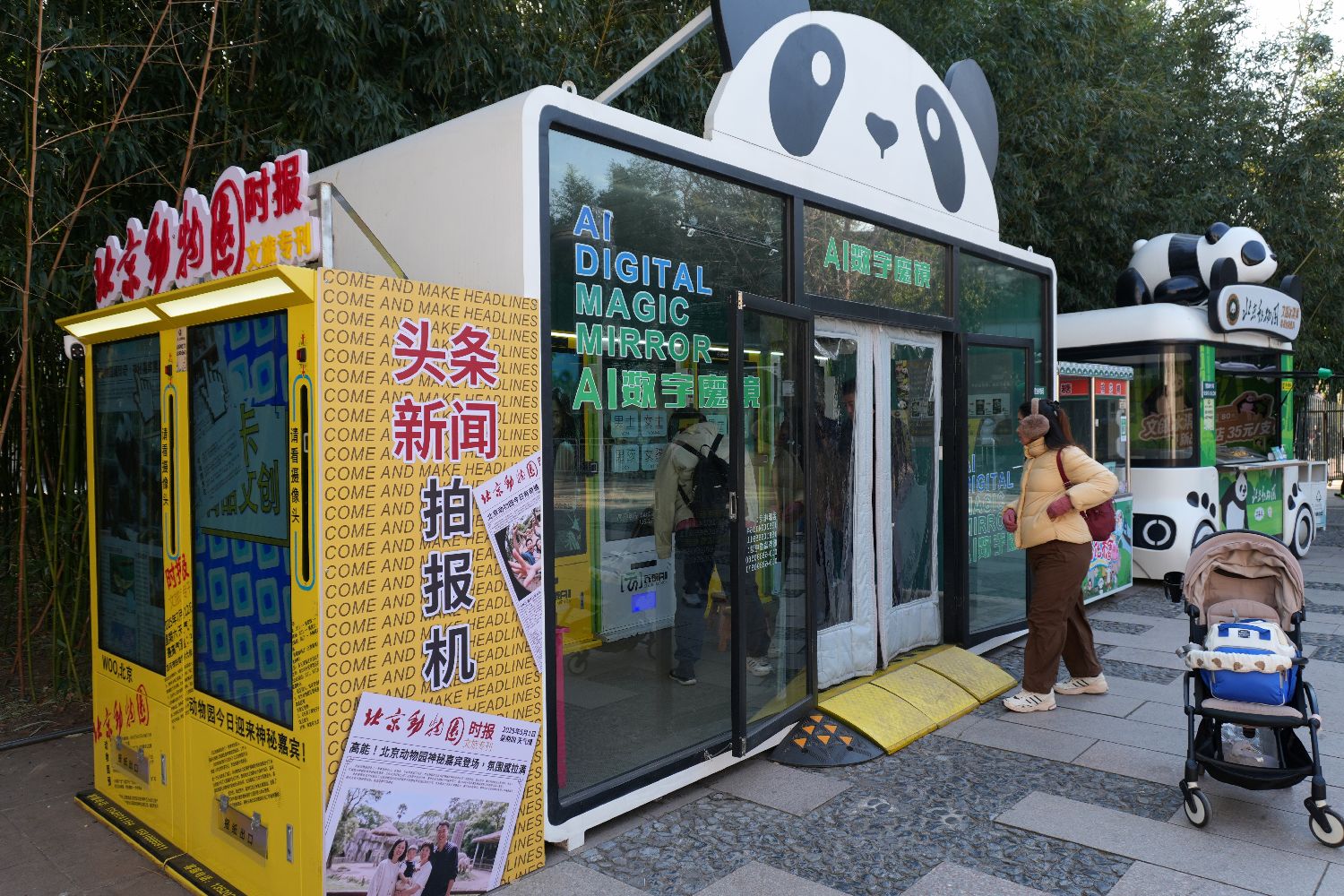 ▲12月5日,市民体验AI数字魔镜拍摄功能。北京动物园熊猫馆内的AI数字魔镜拍照机,内置多款熊猫合影写真模板,受到市民的欢迎。(图片来自中新社)
