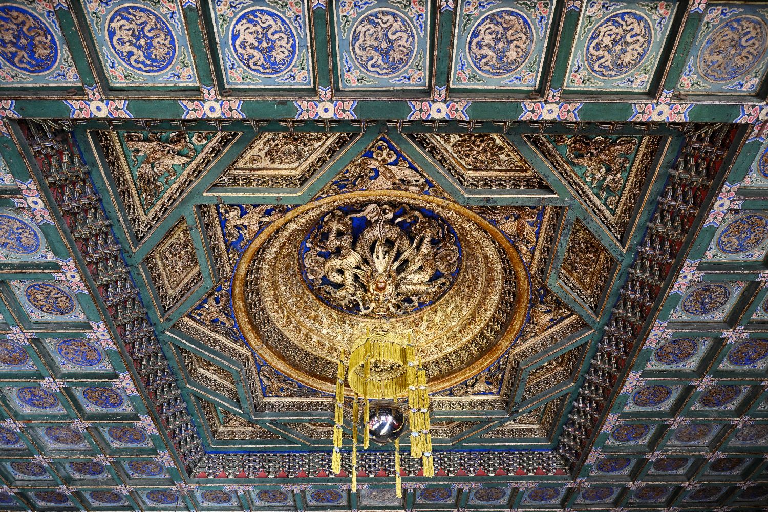 ▲12月26日,关闭十年的北京故宫博物院养心殿向公众重新开放。图为12月25日拍摄修缮后的养心殿藻井。(图片来自中新社)