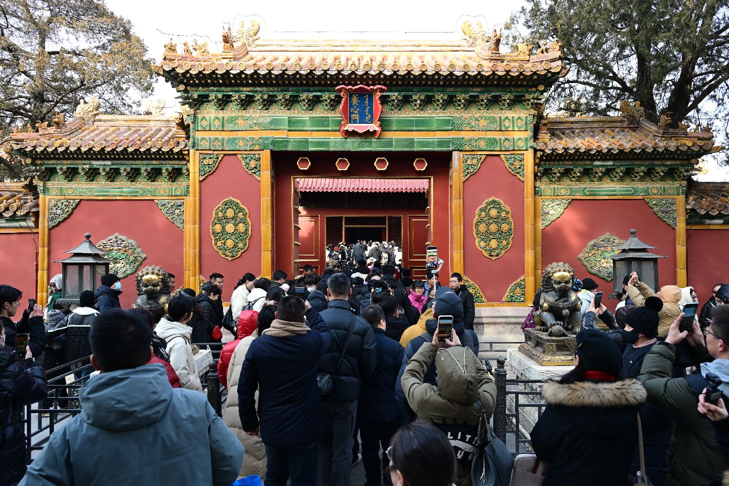 ▲12月26日,游客通过养心门进入养心殿。(图片来自中新社)
