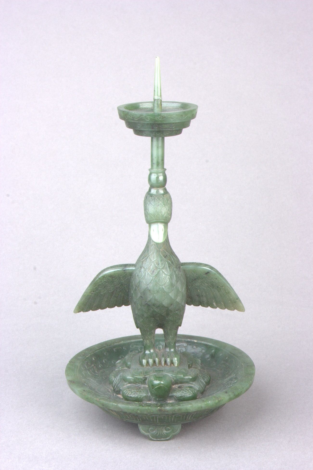 ▲清代海晏河清碧玉烛台。(图片来自《中国文化报》)