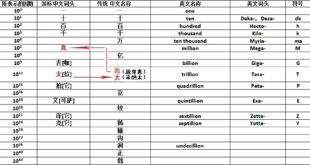 ▲ 数词词头和名称表。(图片来自中国新闻周刊)