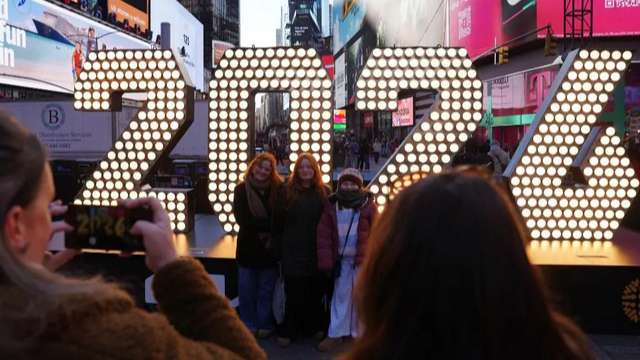 ▲2025年12月22日,在美国纽约时报广场,游客在2026年数字牌前留影。(图片来自新华社)