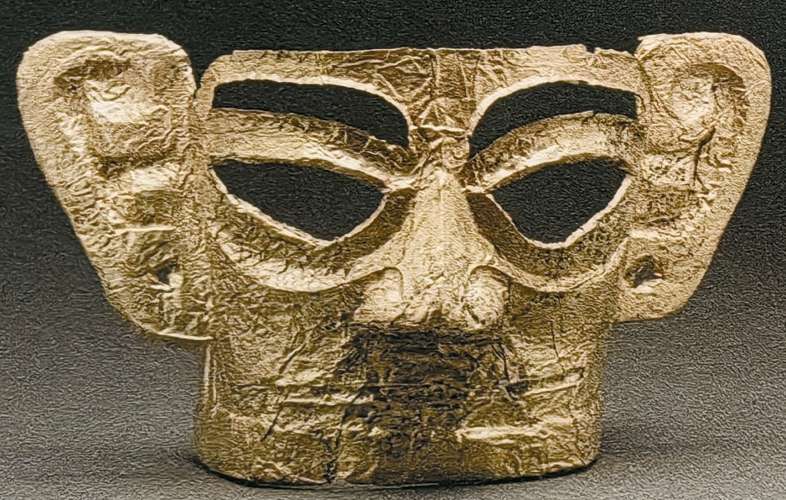 ▲三星堆博物馆藏的商代金面具。(图片来自北京青年报)