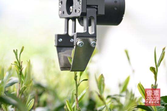 ▲机械臂模仿人手采摘西湖龙井嫩芽。图自中新网