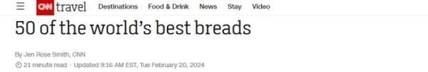 CNN在文章开头介绍称,《面包:全球历史》一书的作者鲁贝尔认为,对面包制定严格的定义是没有必要的,“它并不需要用任何特定种类的面粉制成”。文章还称,各类面包除了令人难忘的味道外,还在于其独特的成分、标志性的地位以及食用它们时纯粹、温馨的乐趣。