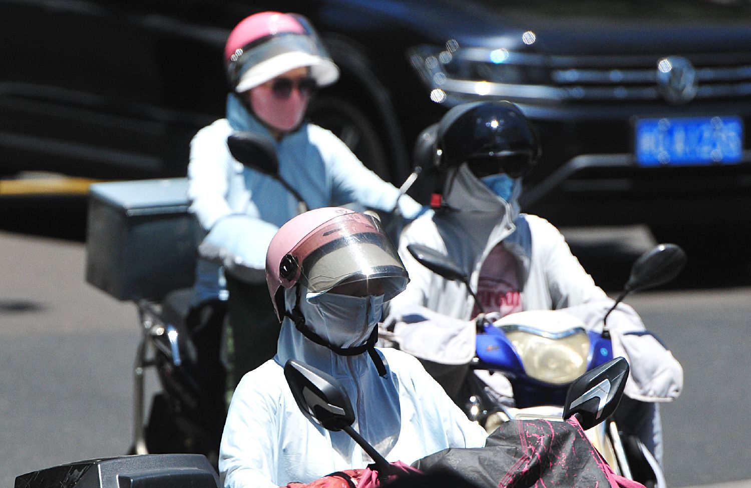 ▲7月8日,福建福州,市民“防晒装”出行。(图片来自中新社)
