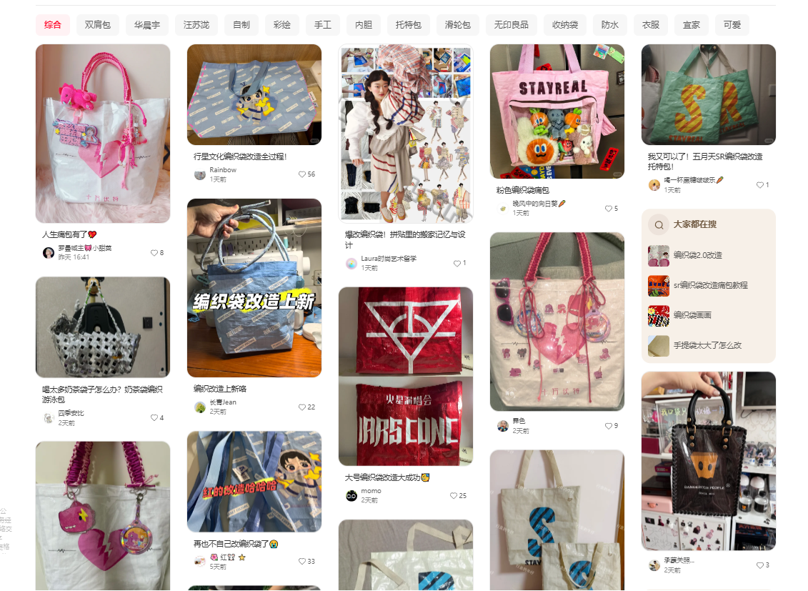 ▲社交媒体上关于编织袋的讨论。(图片来小红书截图)