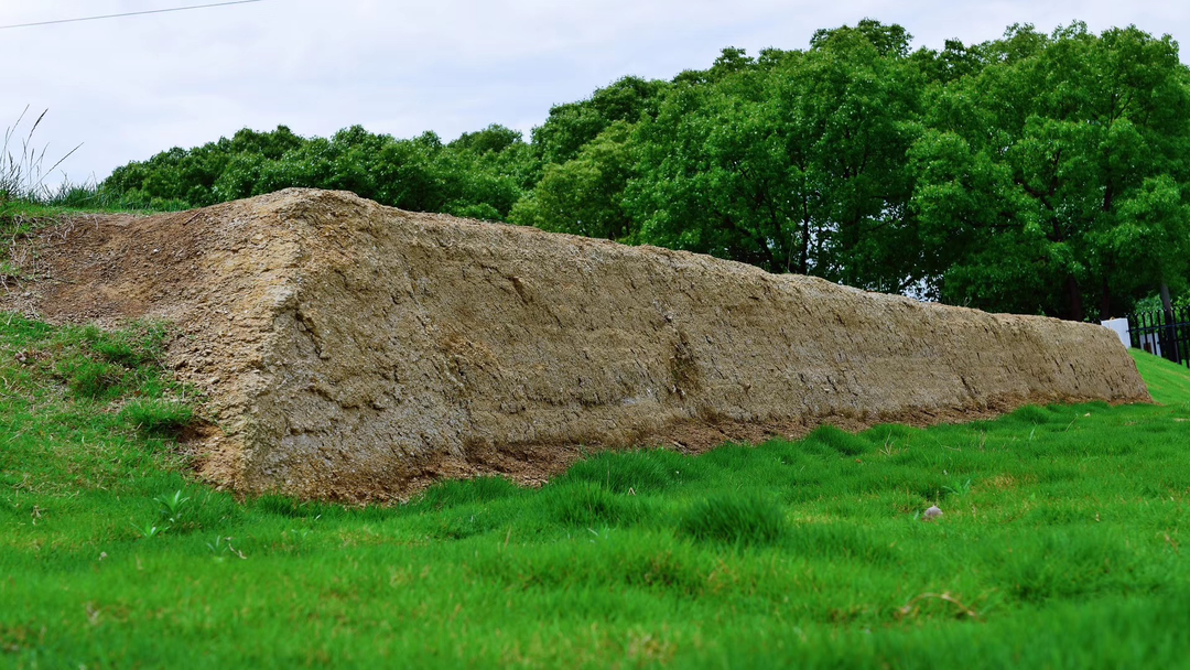▲阖闾城遗存城墙基,宽约20米,高1—2米(阖闾城遗址博物馆/供图)