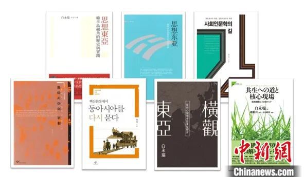 ▲白永瑞教授部分出版书籍。上左1、左2《思想东亚》,上右1《社会人文学之路》(韩文),下左1《东亚的回归》(韩文),下左2《在核心现场重思东亚》(韩文),下右2《横观东亚》,下右1《共生之道与核心现场》(日文)。受访者供图