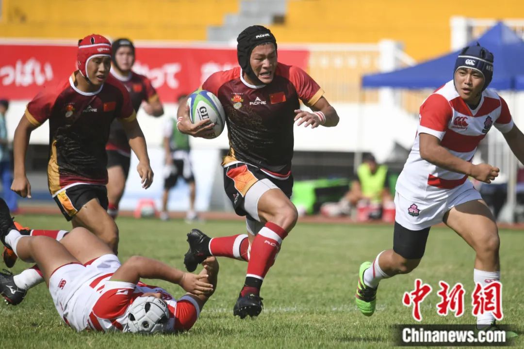 ▲2019年8月,第二十七届中日韩青少年运动会橄榄球比赛在湖南长沙举行。图为中国队与日本队比赛。杨华峰摄