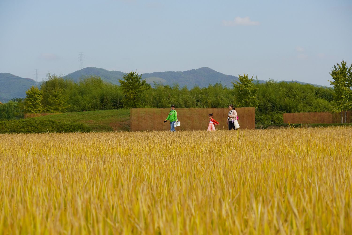 ▲2022年10月,游人行走在良渚古城遗址公园稻田旁。(图片来自中新社)