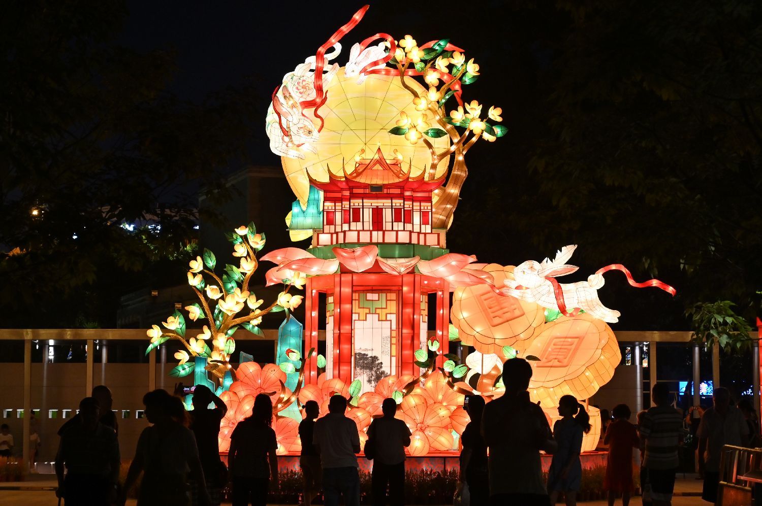▲9月13日晚,广州文化公园2024年中秋灯会试亮灯,吸引游客参观。(图片来自中新社)
