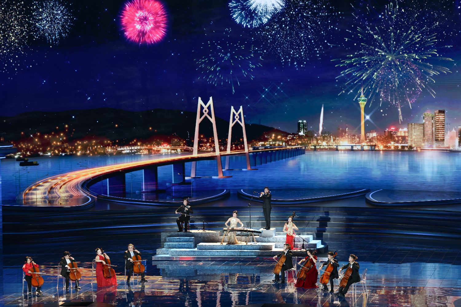 ▲12月19日晚,庆祝澳门回归祖国25周年文艺晚会在澳门东亚运动会体育馆举行。(图片来自中新社)