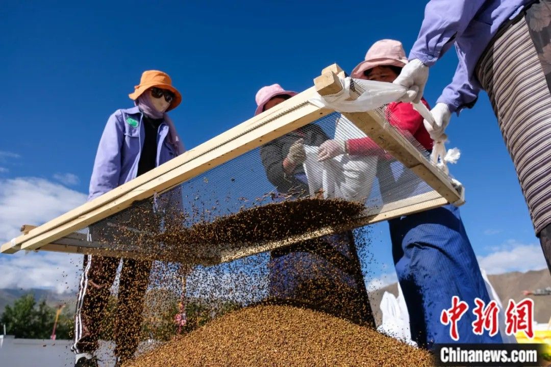 ▲2020年6月9日,西藏拉萨,工作人员正在筛选树(草)种。中新社记者 何蓬磊 摄