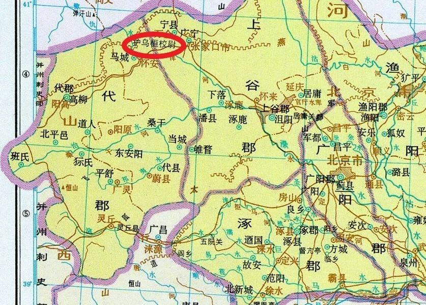 ▲东汉时期,设于上谷郡的“护乌桓校尉”。(图片自谭其骧《中国历史地图集》)