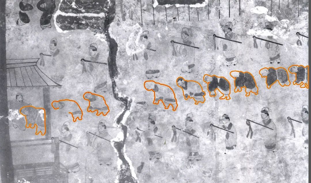 作为“使持节”官员,阚如手握奉旨赏罚的特殊权力以及对于岁赏互市的控制,在该地区具有较高威望。壁画中也多次展现了阚如连骑结队的盛大出行阵仗。