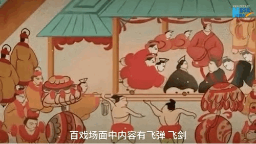 ▲《幕府图》中的乐舞百戏场面。(图片自新华网)