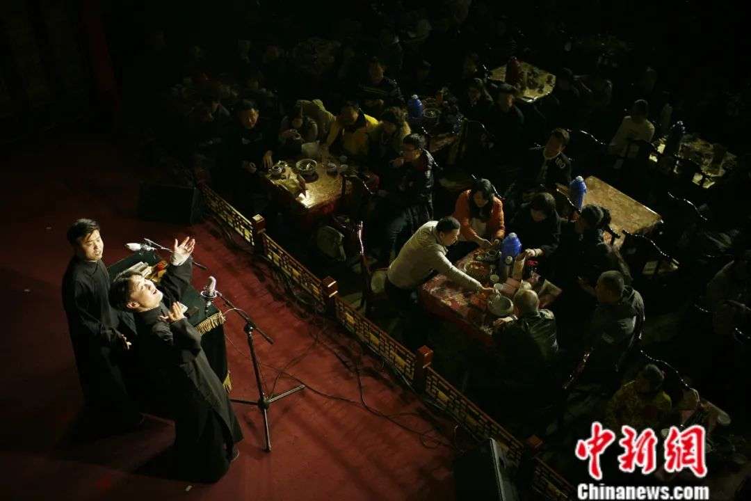 ▲2017年2月11日,被誉为“天津第一茶馆”的百年谦祥益文苑客座满堂,许多市民及游客到此喝茶,听相声,感受天津“曲艺之乡”的文化魅力。在百年绸缎老店谦祥益原址上建成的谦祥益文苑,有着“天津第一茶馆”之称,天津众多相声名家均在此演出。中新社记者 佟郁 摄