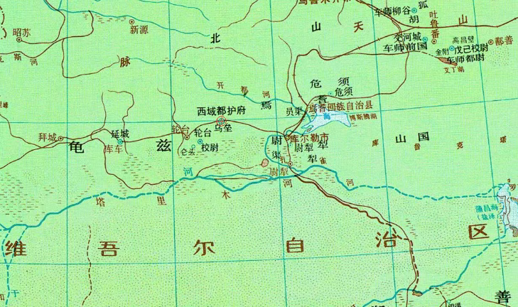 ▲西汉轮台所在(图片来源:谭其骧《中国历史地图集》)