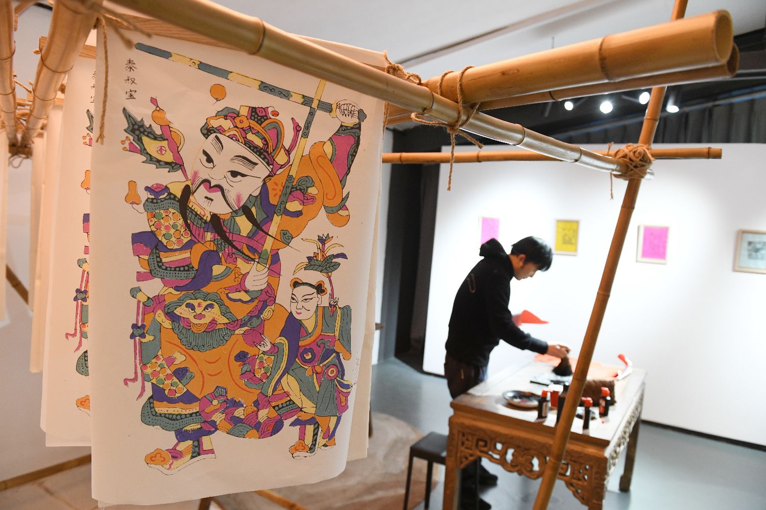 ▲1月31日,长沙市圆点美术馆展出《开门见喜》非遗年画展。(图片来自中新社)
