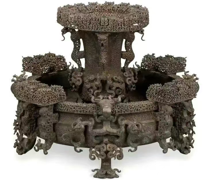 ▲曾侯乙尊盘造型美观,极尽奢华,是先秦时期制作的最为复杂、最为精美的青铜礼器。(图片来源:湖北省博物馆)
